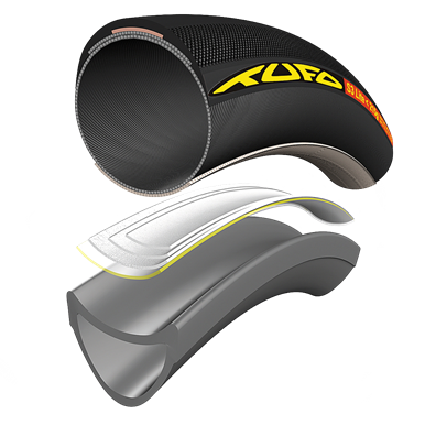 plies are overlapped and joined underneath the thread, creating increased TPI (threads per inch) value and better tyre puncture resistance.
